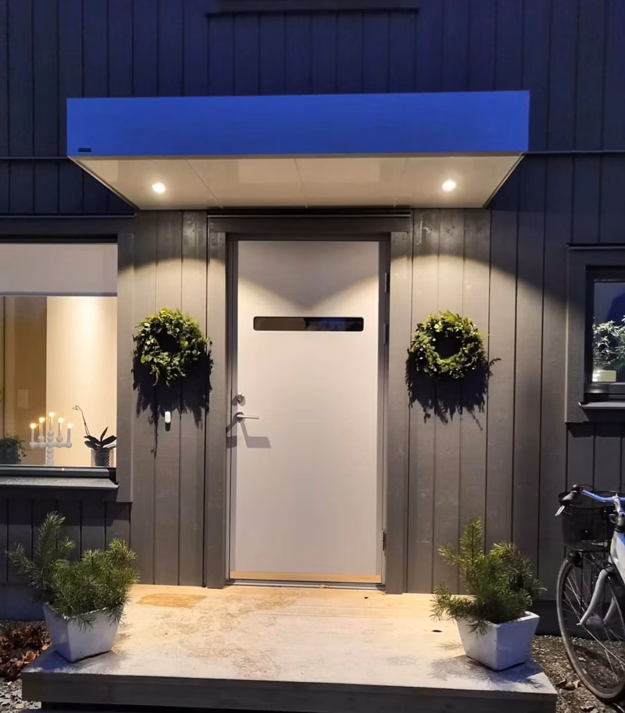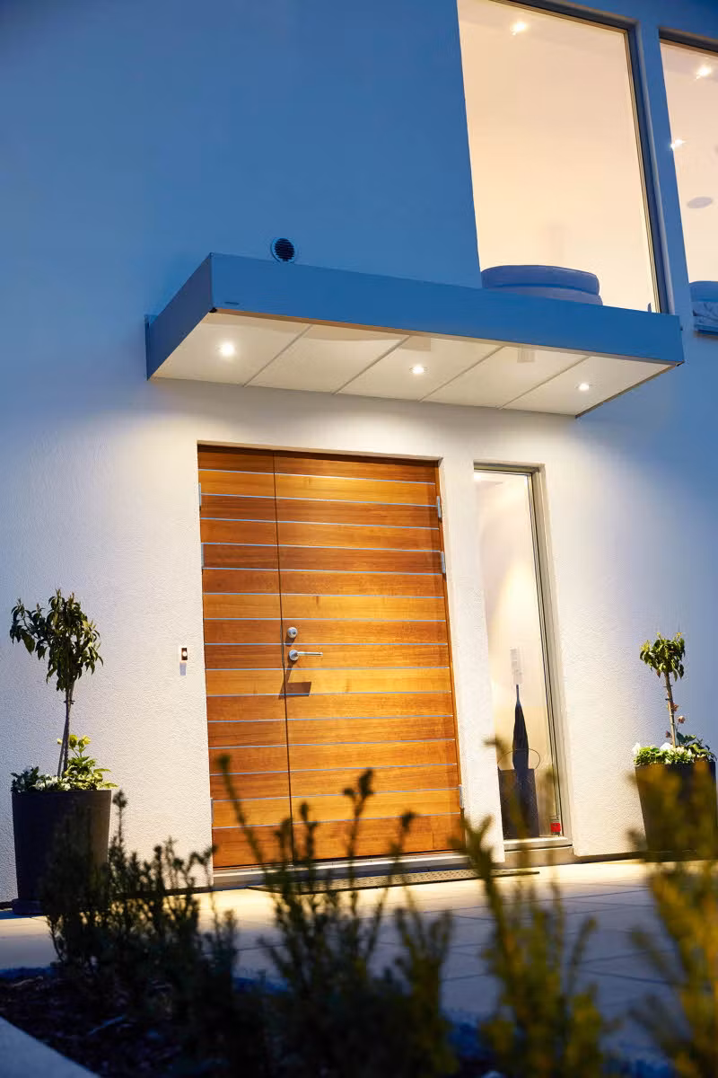 Söker du en belyst entré kan du välja att få infällda spotlights i ditt tak, dessa finns i tre olika färger.