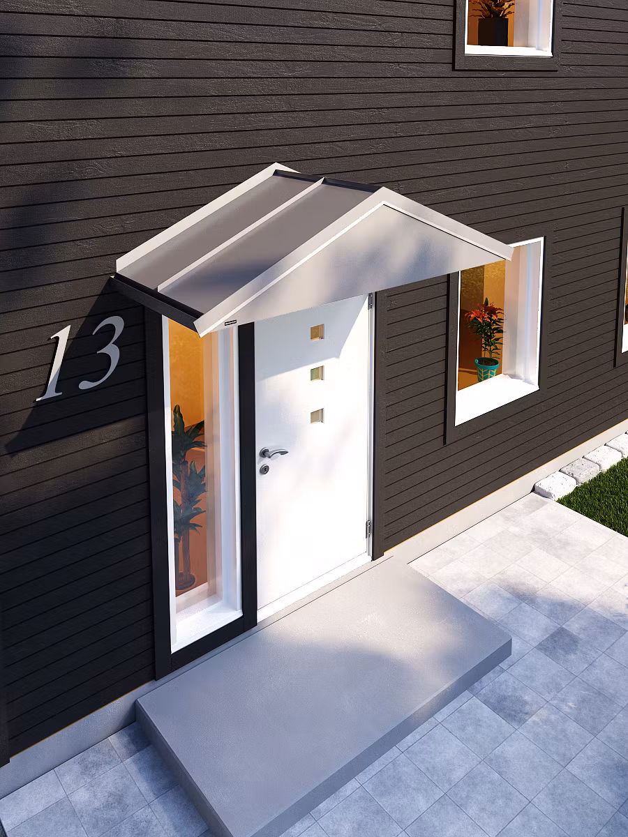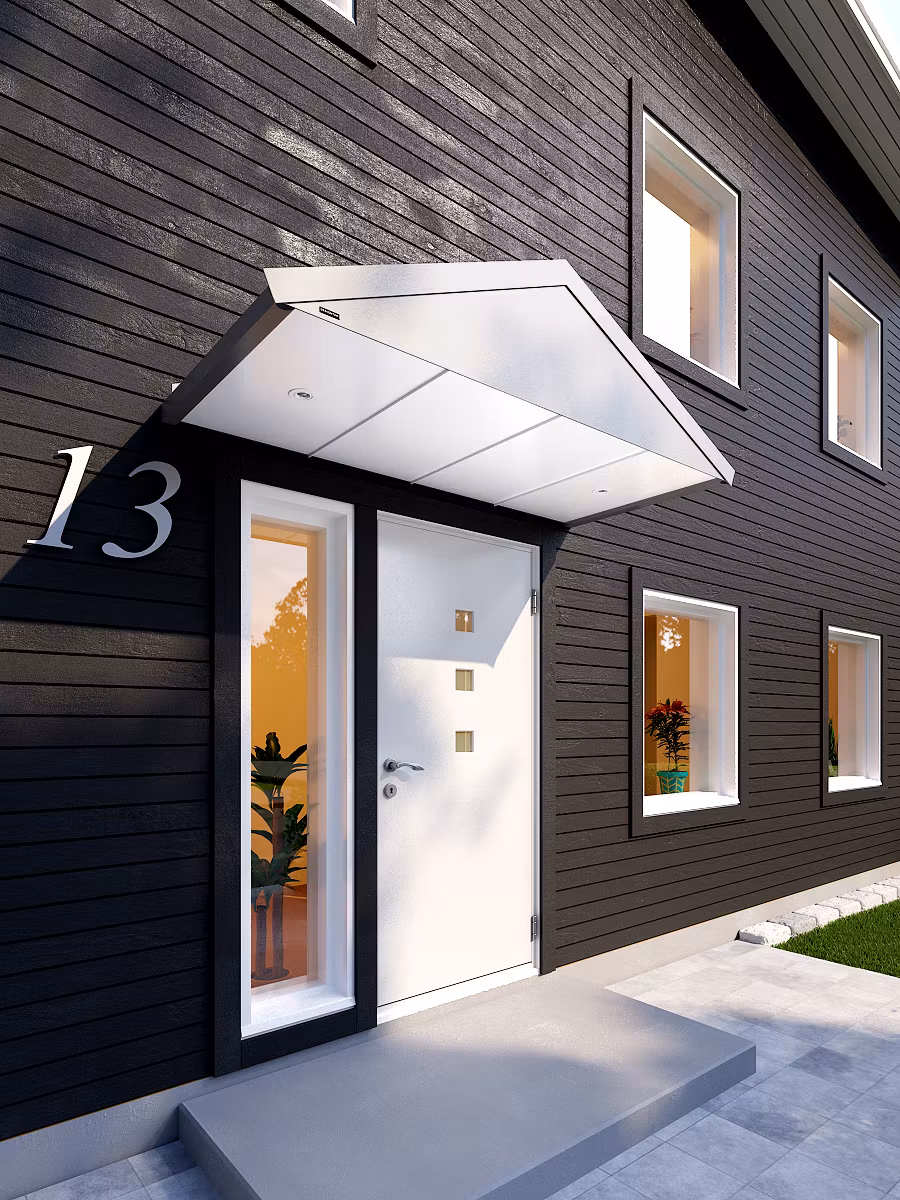 Monteringen är mycket enkel tack vare den lätta vikten och medföljande monteringsanvisning gör att du sparar både tid och pengar. Trots en robust konstruktion har vi möjlighet att hålla en relativt låg vikt på våra produkter tack vare de material vi använder. Våra entrétak har med detta också en lång livslängd och kräver minimalt med underhåll.