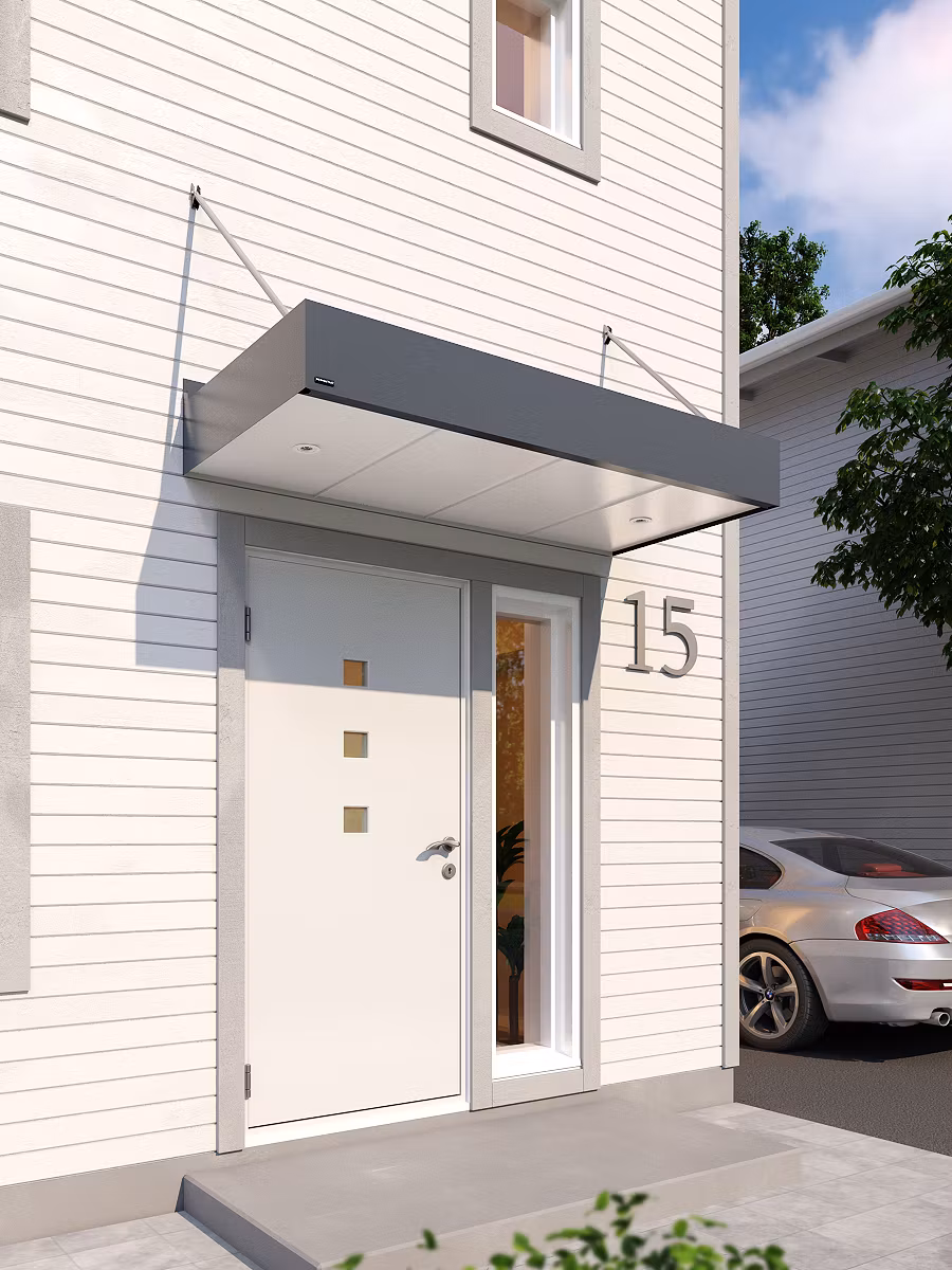 Monteringen är mycket enkel tack vare vårt unika upphängningssystem. Den lätta vikten och medföljande monteringsanvisning gör att du sparar både tid och pengar. Trots en robust konstruktion har vi möjlighet att hålla en relativt låg vikt på våra produkter tack vare de material vi använder. Våra entrétak har med detta också en lång livslängd och kräver minimalt med underhåll.