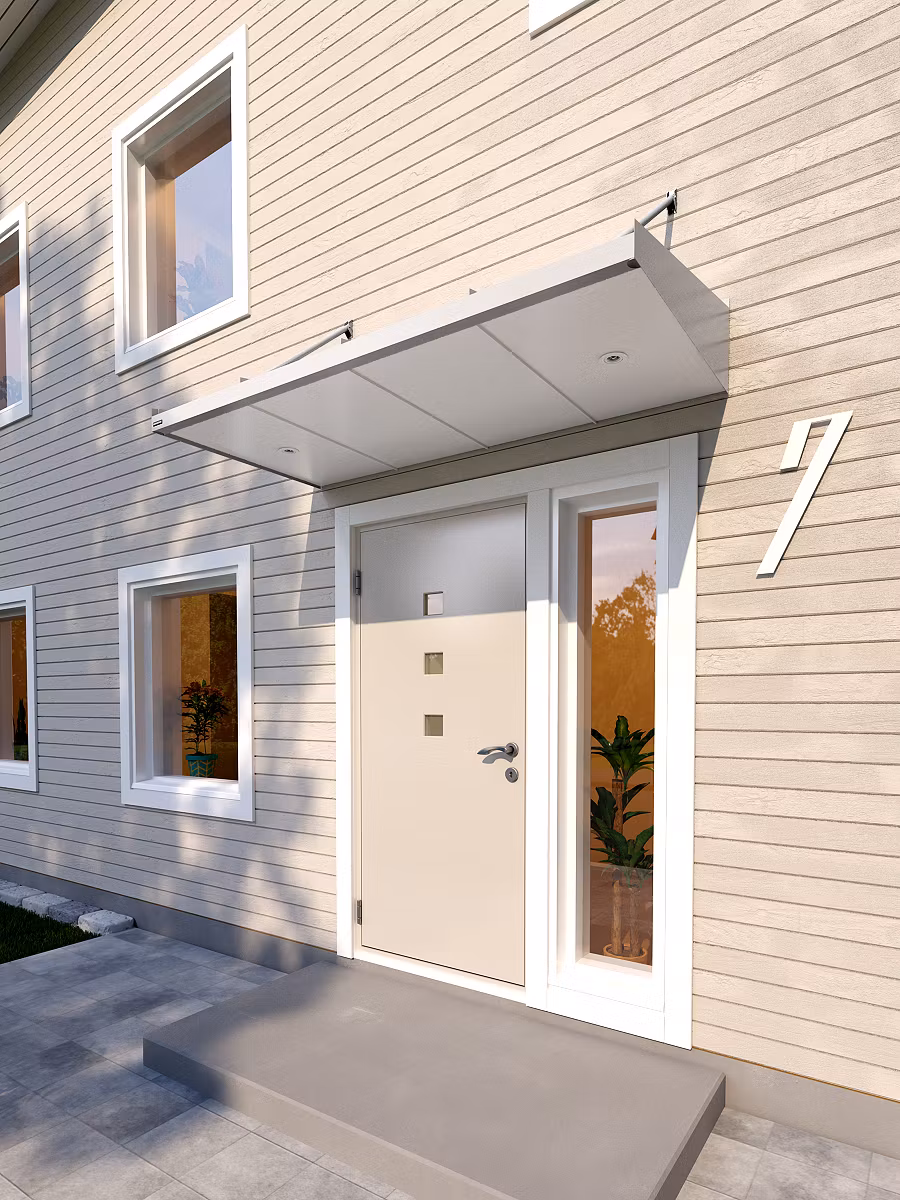 Monteringen är mycket enkel tack vare vårt unika upphängningssystem. Den lätta vikten och medföljande monteringsanvisning gör att du sparar både tid och pengar. Trots en robust konstruktion har vi möjlighet att hålla en relativt låg vikt på våra produkter tack vare de material vi använder. Våra entrétak har med detta också en lång livslängd och kräver minimalt med underhåll.