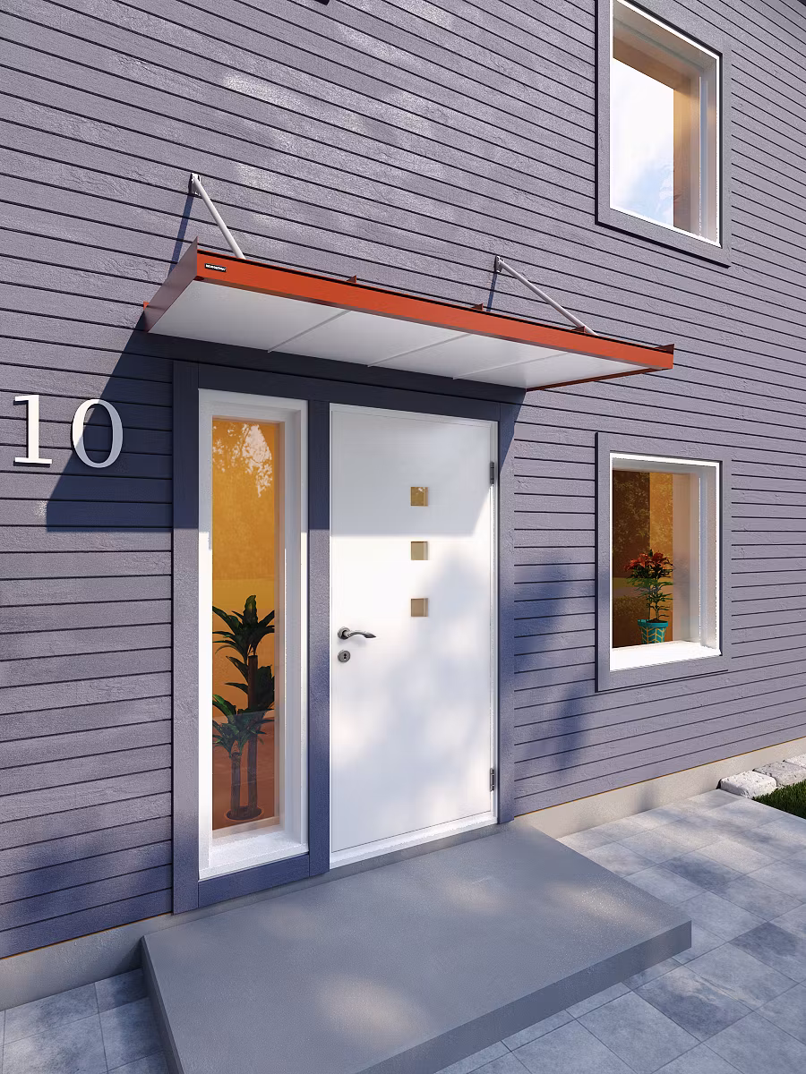 Monteringen är mycket enkel tack vare den lätta vikten och medföljande monteringsanvisning gör att du sparar både tid och pengar. Trots en robust konstruktion har vi möjlighet att hålla en relativt låg vikt på våra produkter tack vare de material vi använder. Våra entrétak har med detta också en lång livslängd och kräver minimalt med underhåll.