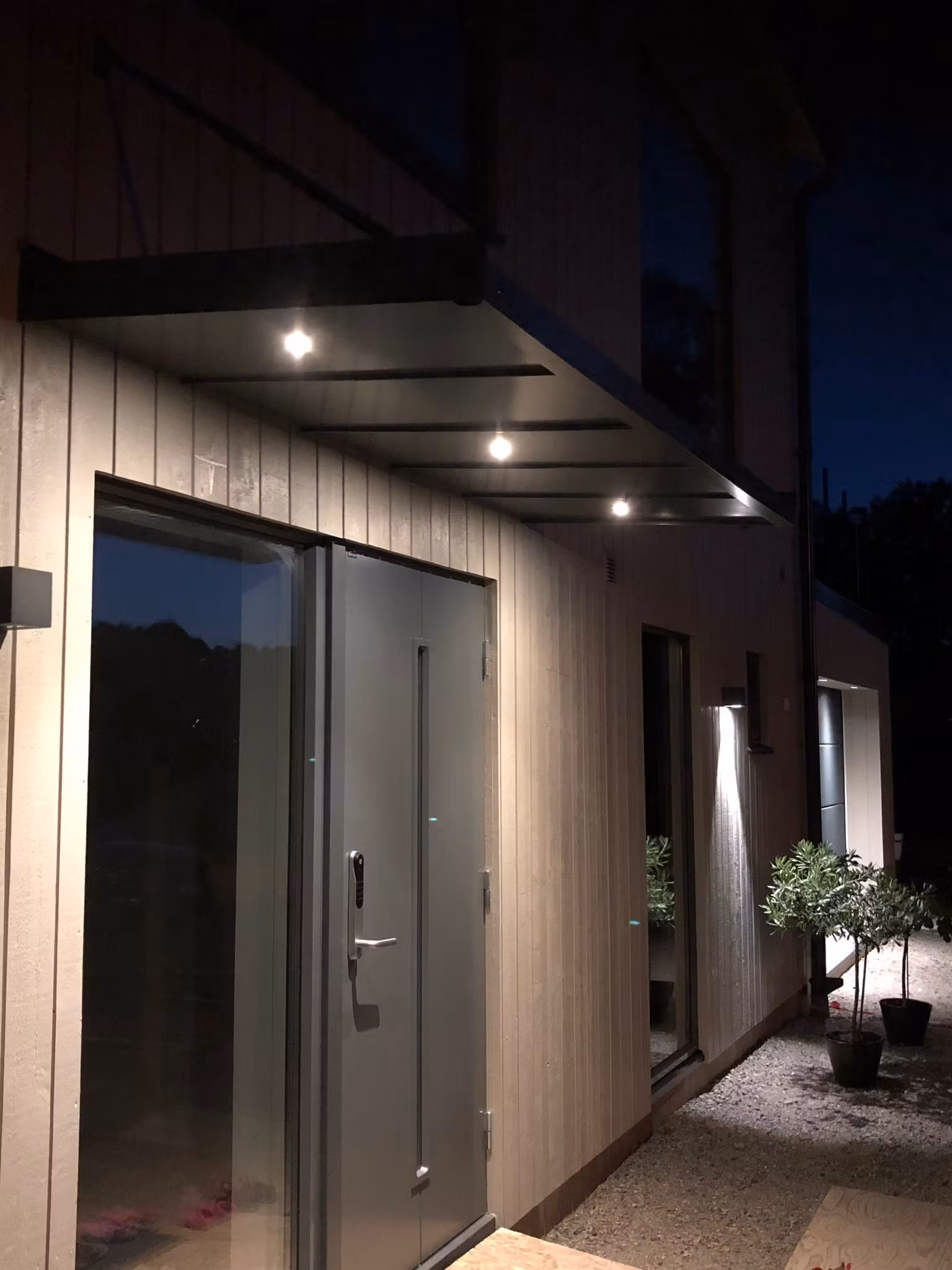 Söker du en belyst entré kan du välja att få infällda spotlights i ditt tak, dessa finns i tre olika färger.