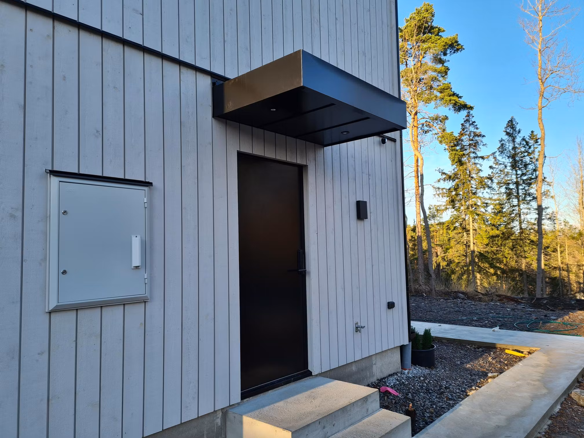 • Använd silikon/byggfog för att täta mellan entrétakets överbleck och husfasaden.